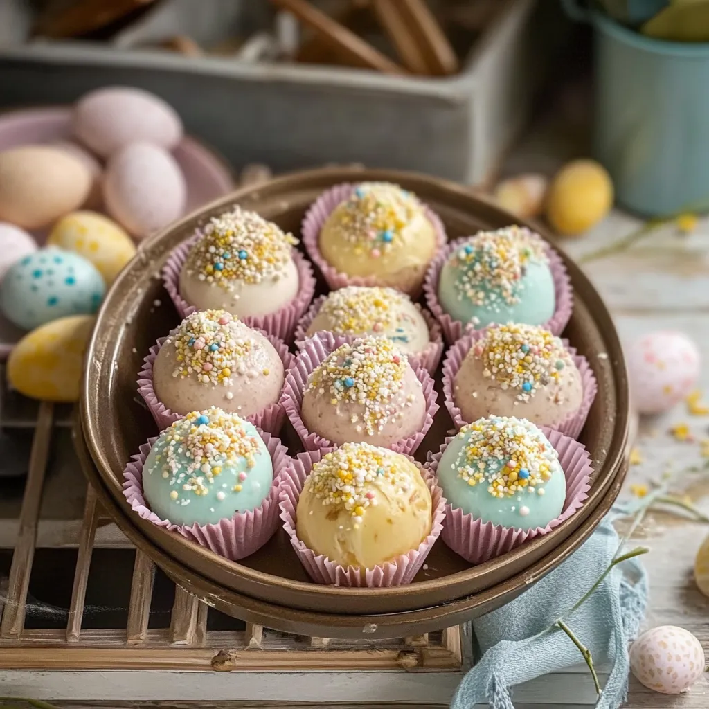 How can we serve these delightful truffles? They’re perfect as a standalone dessert, or you can pair them with a cup of fresh coffee or a tall glass of cold milk—talk about a match made in heaven! For an Easter brunch, think of placing a beautiful platter of truffles next to a fruit salad or even alongside a substantial cake. Their creamy sweetness could also complement a tangy citrus dish beautifully. Don’t forget to add some edible flowers for a stunning presentation!