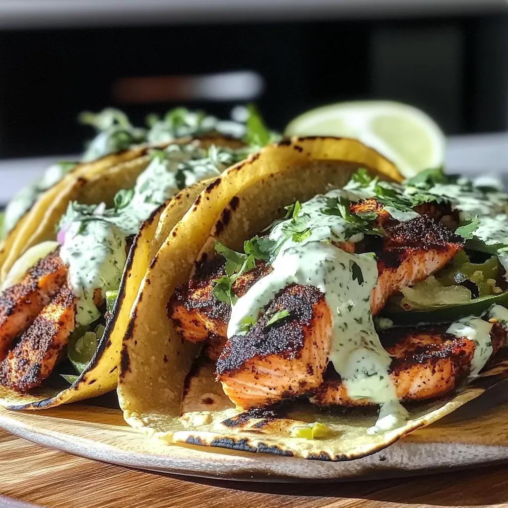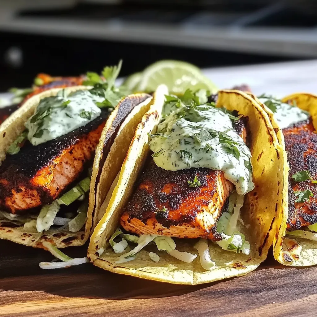 Easy Blackened Salmon Tacos Recipe with Zesty Cilantro Crema