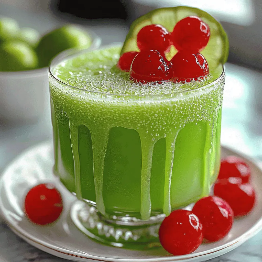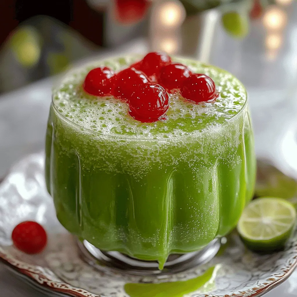 - Garnish & Serve: Finish it off with lemon slices and a few green candies or gummy Grinches for a festive touch. Ladle into glasses and watch the smiles appear!