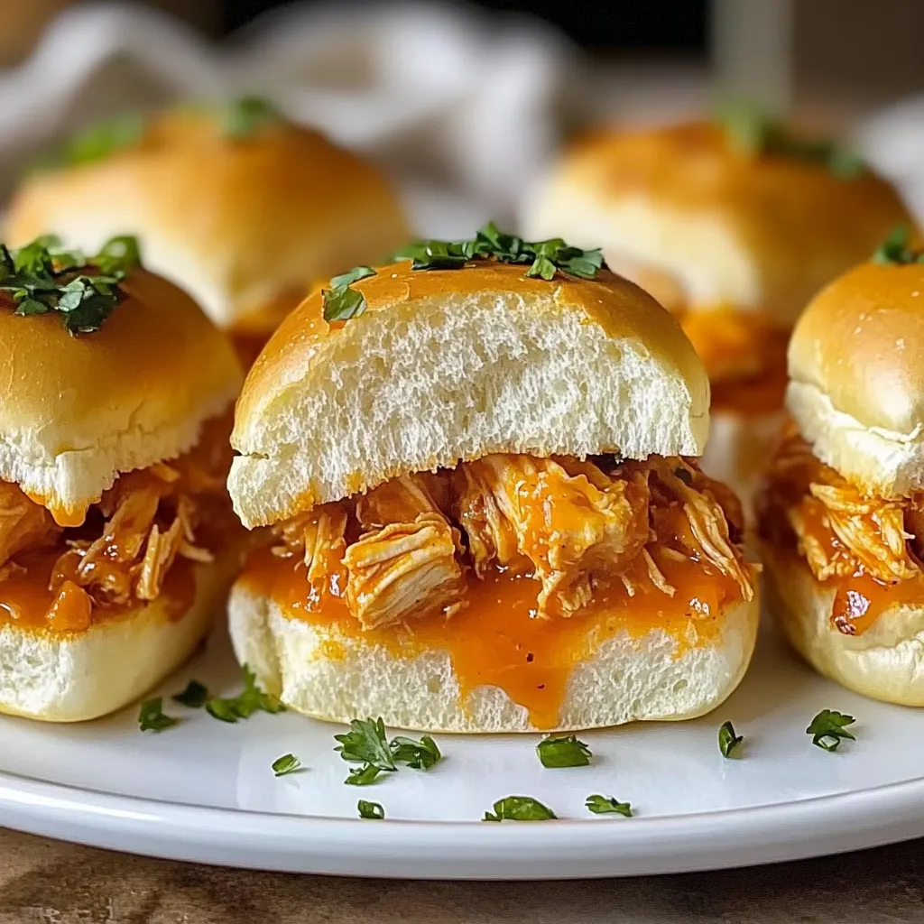 When it comes to serving these delightful sliders, think cozy gatherings! I love to create a little party platter with an array of tiny pickles, crispy chips, or even fresh veggie sticks (perfect for dipping in that extra ranch or blue cheese dressing). For beverages, crisp, chilled soda or a cold beer pairs perfectly, especially on game day! Wrap it all up with a cozy blanket, and you have a perfect night in.