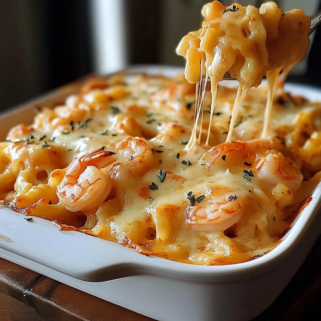 Serving this Cheesy Baked Shrimp Pasta is a feast for the senses! I love to pair it with a simple side salad dressed with lemon vinaigrette for a refreshing crunch. A warm, crusty garlic bread always steals the show on pasta nights, perfect for soaking up that creamy sauce. And if you’re in the mood for something truly cozy, pour yourself a glass of crisp white wine, sit back, and let this comforting meal warm your soul. Picture this: a family dinner table, laughter, and plates topped with the heartiest, cheesiest pasta. Can’t you just feel the love?