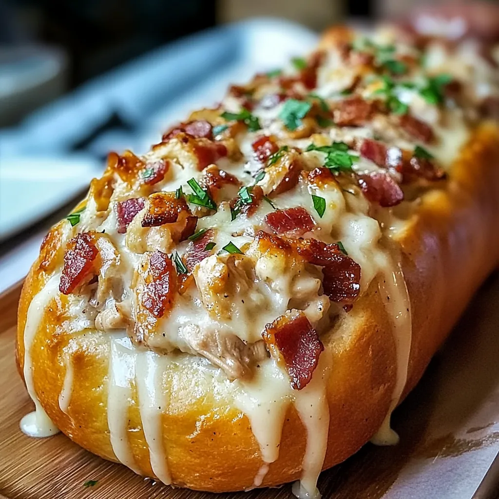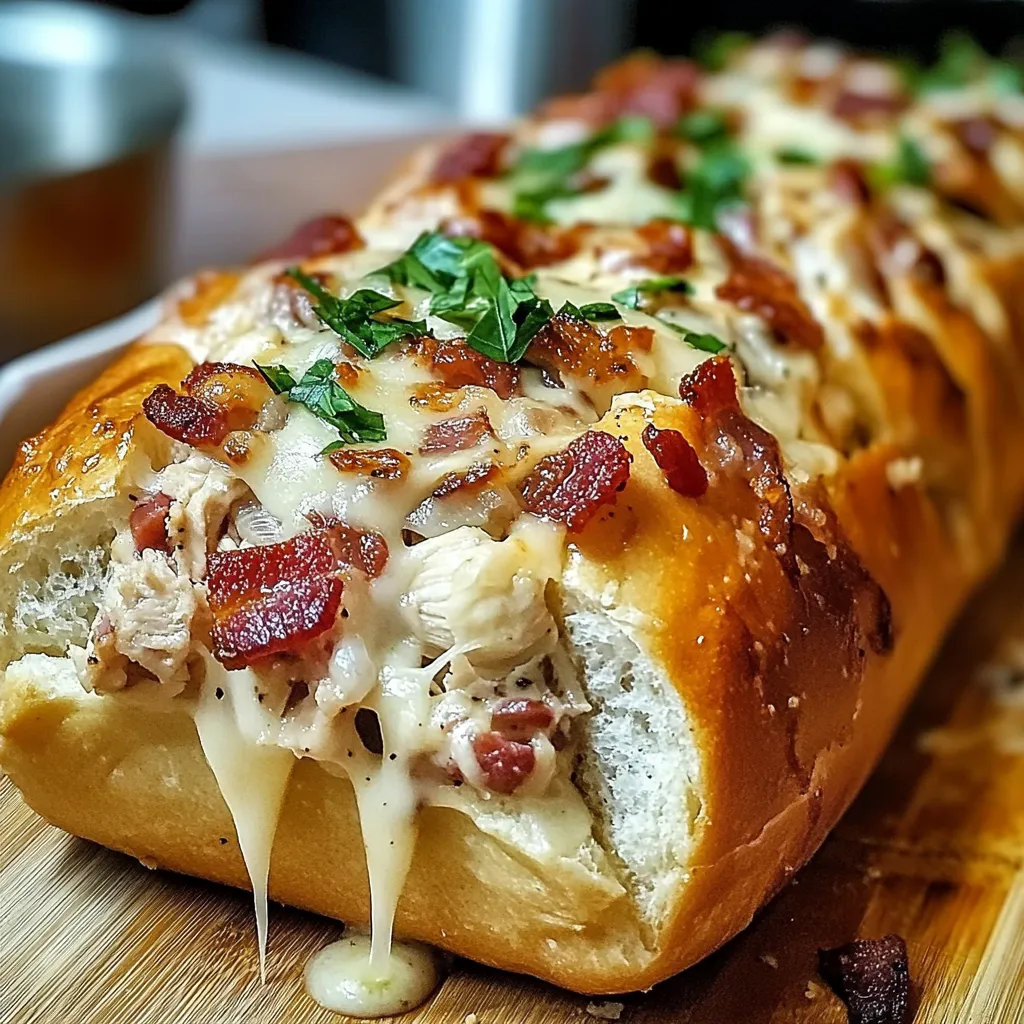 The Chicken Bacon Ranch Stuffed Bread is a satisfying dish that can easily become a staple in your cooking repertoire. It’s perfect for a cozy family dinner, a game day snack, or even a potluck contribution. The combination of hearty ingredients ensures everyone will love it, and with just a little creativity, you can make it your own!