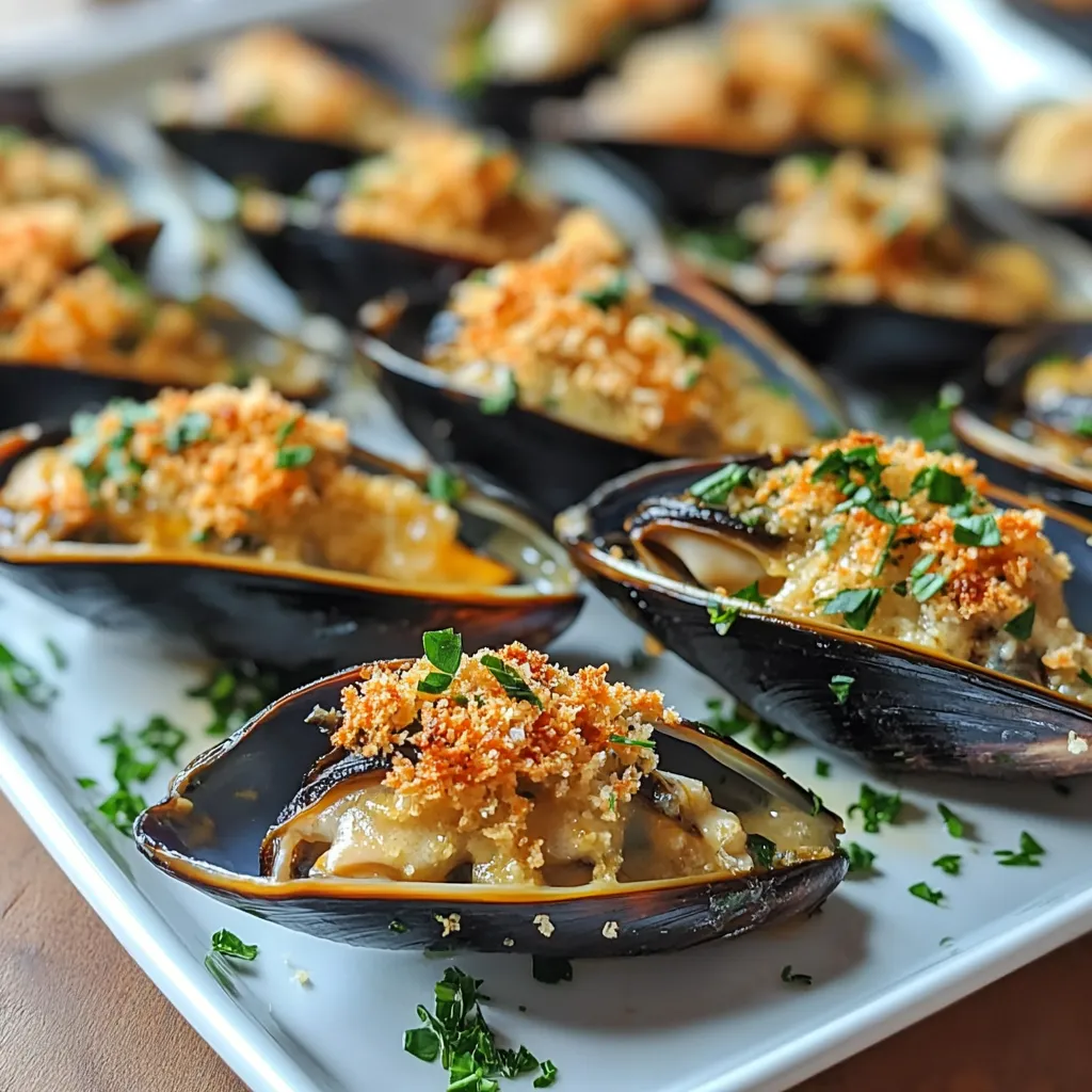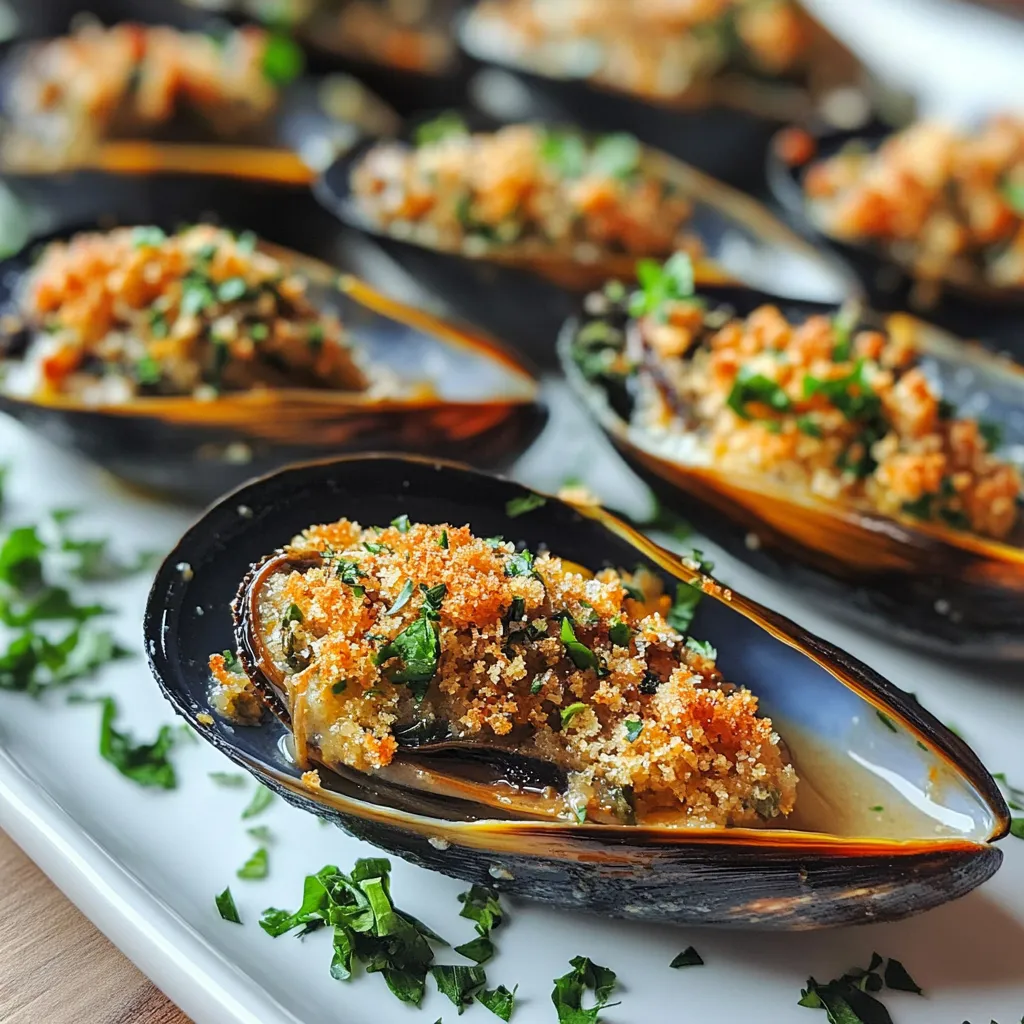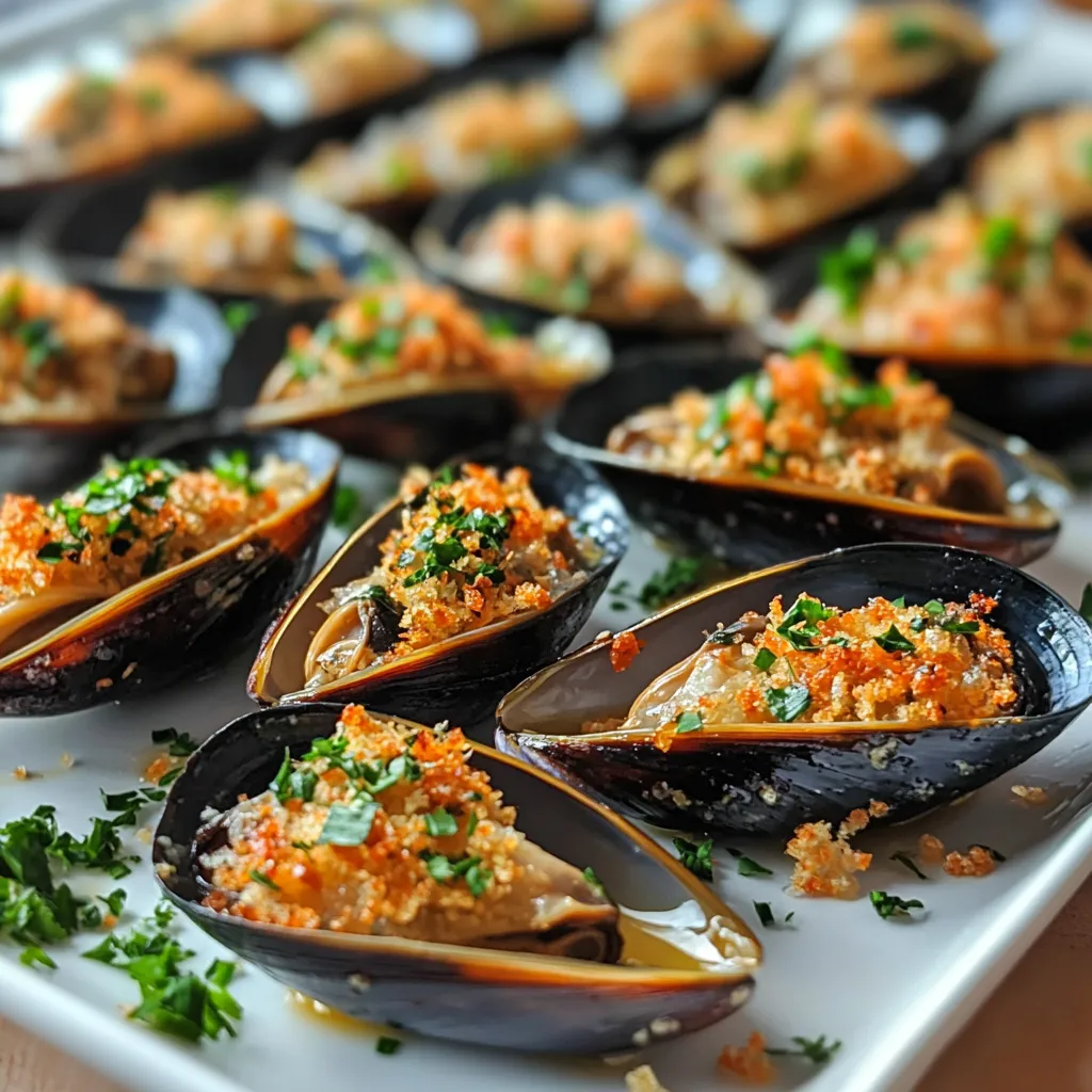 Ah, the best part! When it comes to serving these delectable stuffed mussels, think fun and casual. I love to present them on a large platter, garnished with some extra parsley and lemon wedges for that pop of color and freshness. You can complement this dish with a crusty baguette, perfect for swiping up any remaining stuffing or dipping in a good-quality olive oil. A light salad alongside, perhaps with arugula and cherry tomatoes, balances the richness of the mussels beautifully. And if you’re feeling fancy, why not pair this meal with a chilled glass of white wine? Ah, pure bliss!