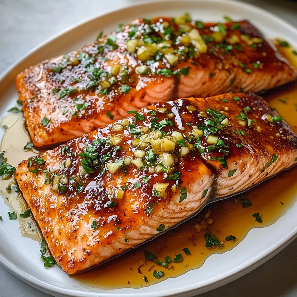 - Make the Glaze: While the salmon is cooking, mix the minced garlic, honey, soy sauce, apple cider vinegar, and grated ginger in a small bowl until combined.