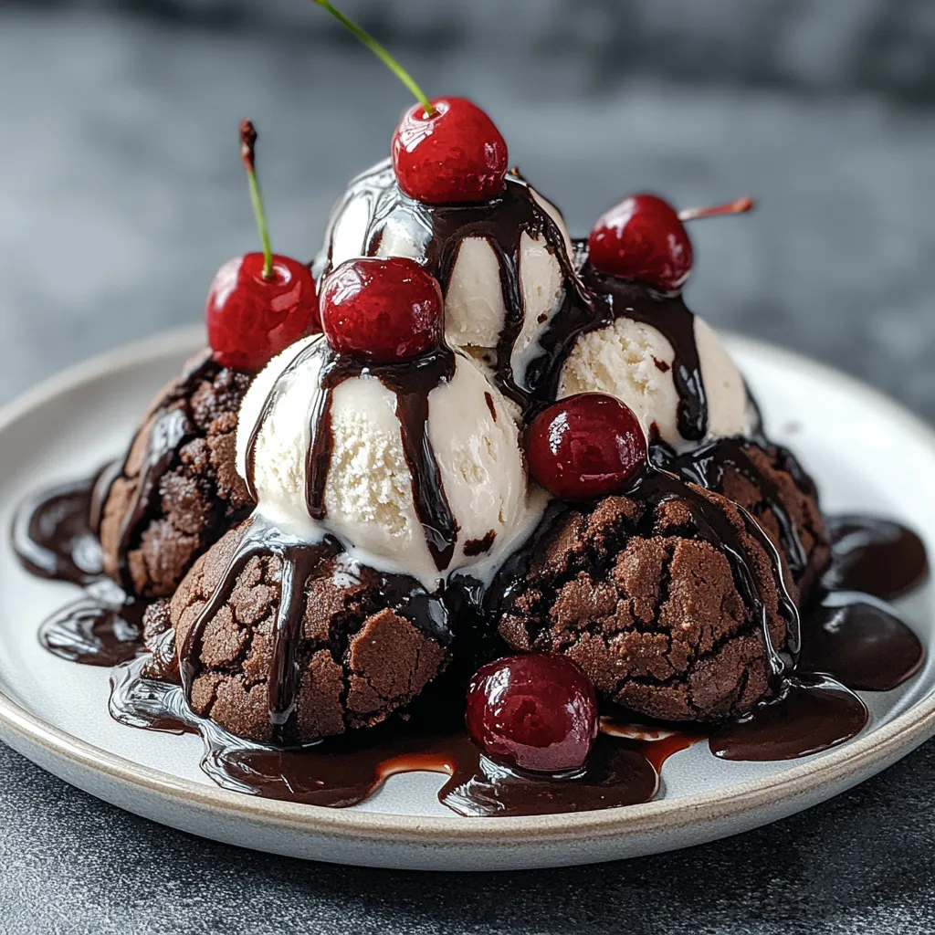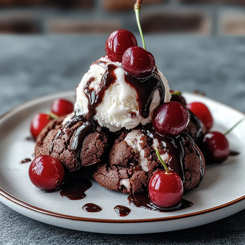 Fudgy Chocolate Cookies w Ice Cream Cherries Decadent Treat
