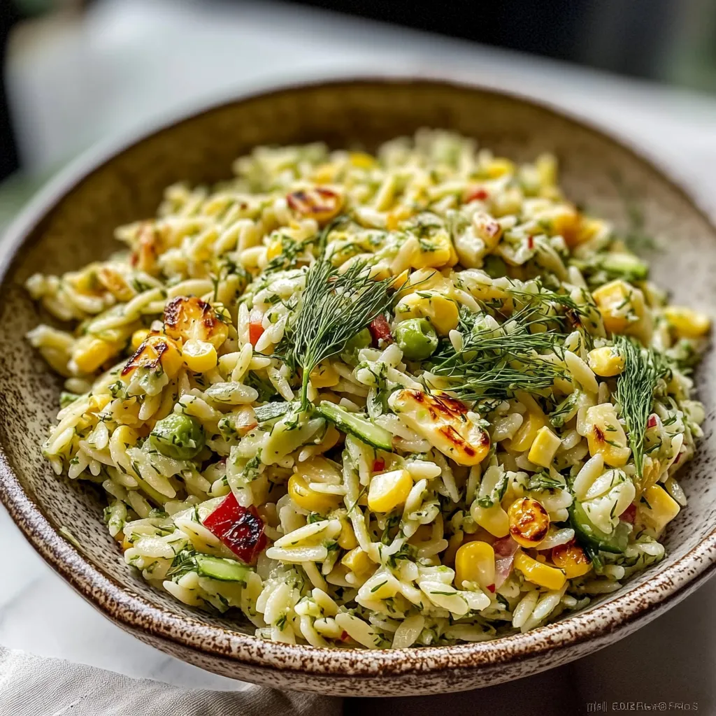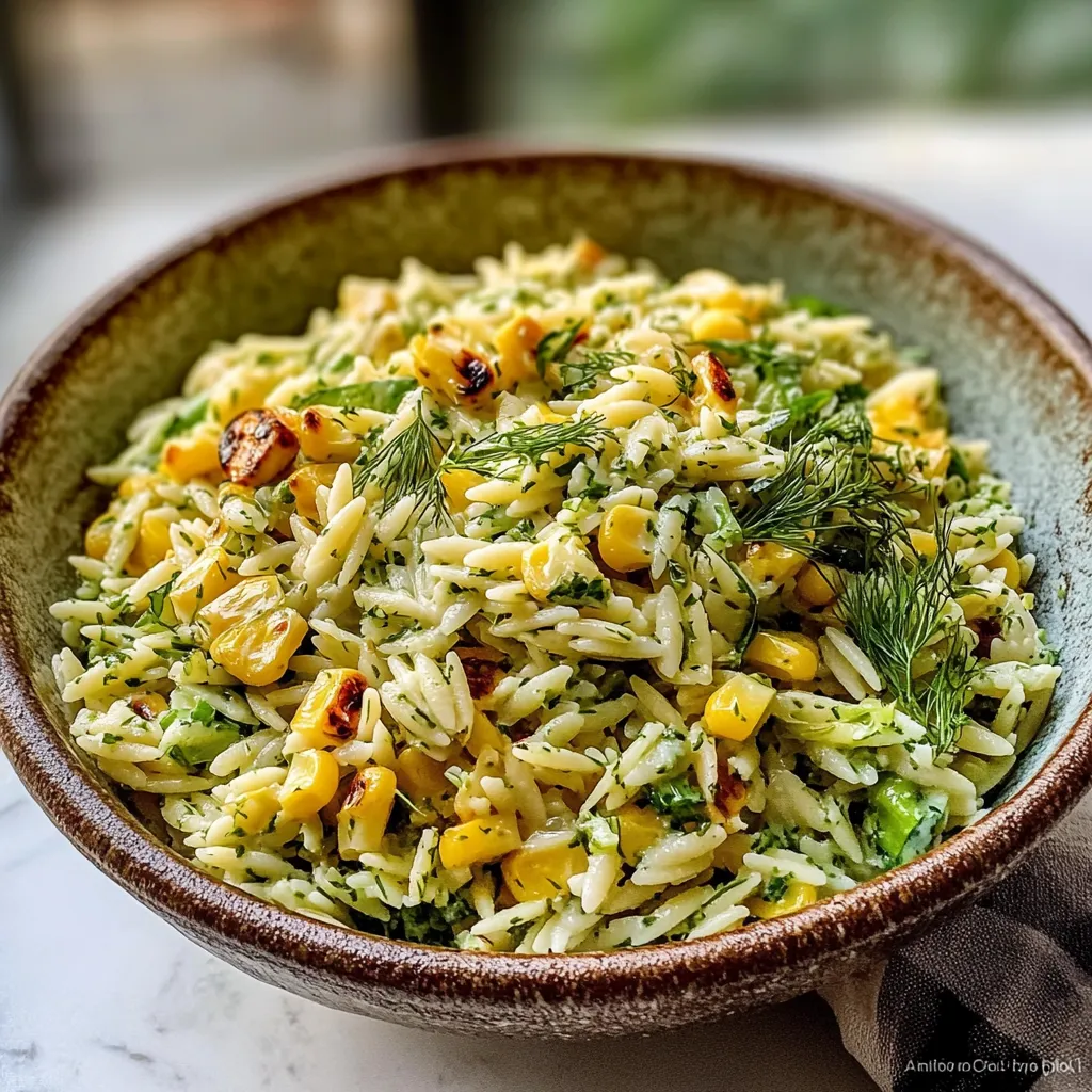 Savory Grilled Corn Orzo Salad with Bold Scallion Dill Dressing