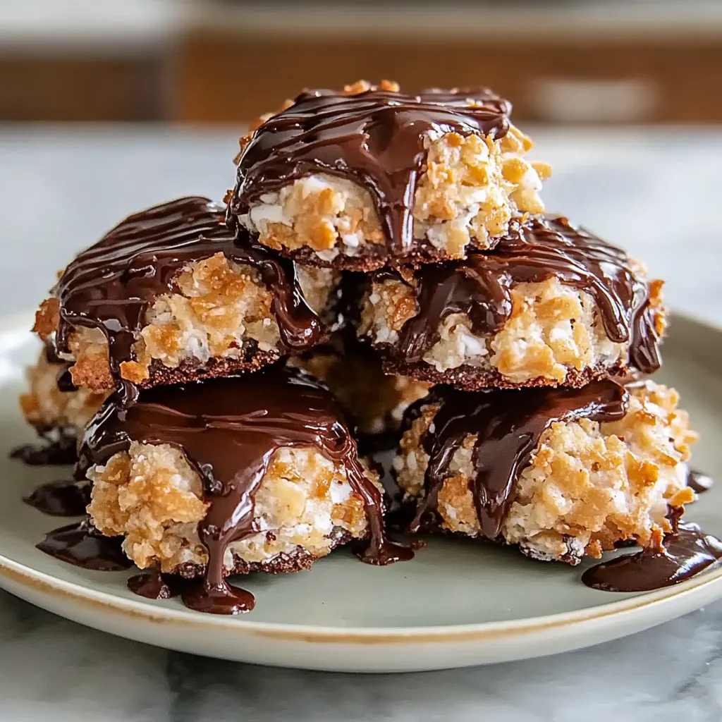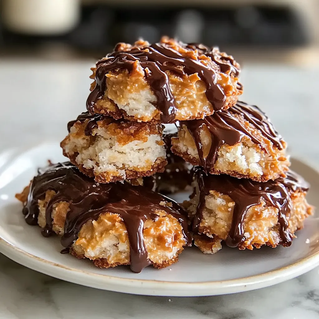 These Samoa cookies are perfect for any occasion! Serve them warm on a cozy coffee table with a steaming cup of coffee or tea in the afternoon. They’re also a great treat at parties—watch as guests rave about them! For a fun twist, how about pairing them with vanilla ice cream? The combination of cool ice cream and warm cookies is nothing short of magical. Just imagine the delicious contrast in textures!