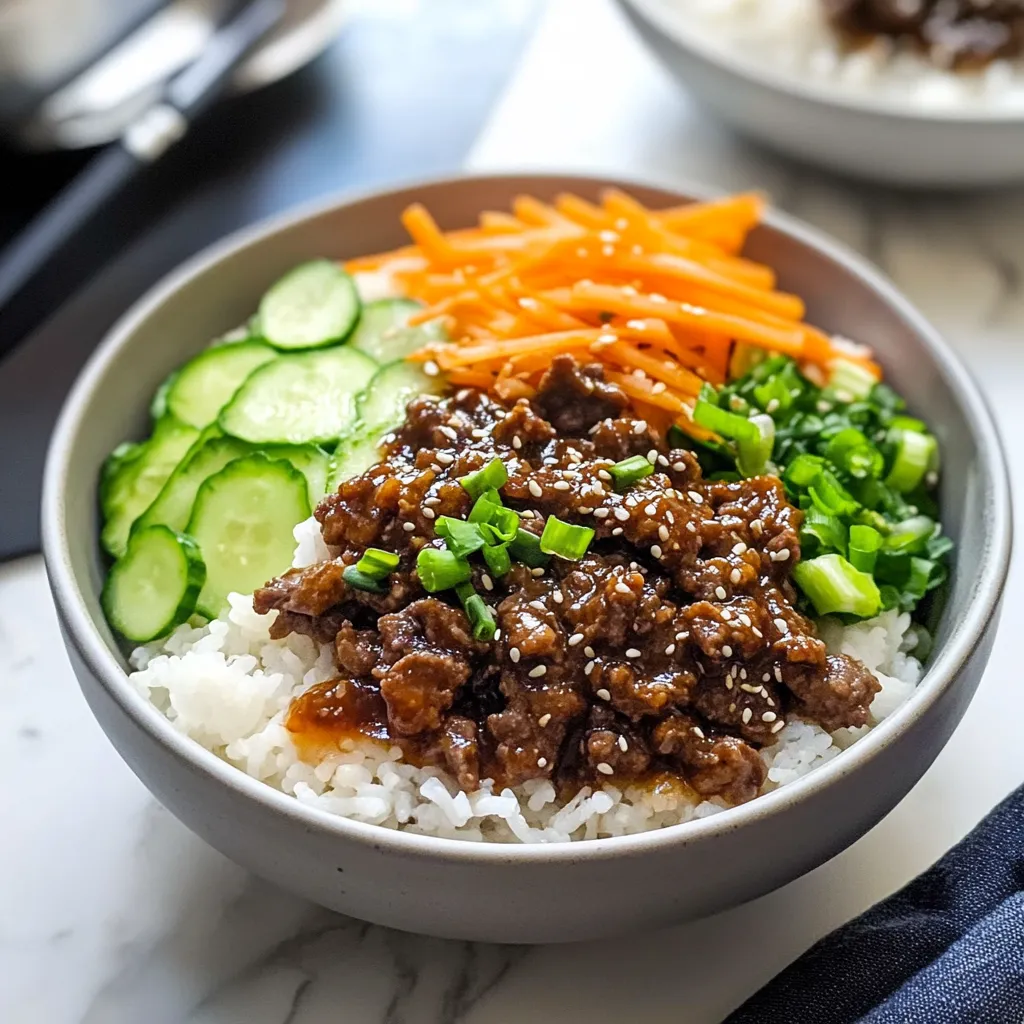 Serving your Korean Beef Bowls should be a feast for the eyes as well as the taste buds! I love spooning heaps of that savory ground beef onto a fluffy bed of rice, then throwing on a handful of vibrant green onions and a sprinkle of sesame seeds. The colorful presentation makes every bowl look inviting!