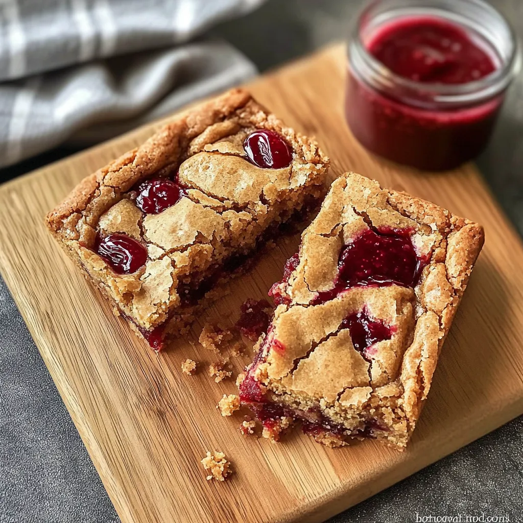 What I love most about this recipe is its ability to evoke memories while still being a fun twist on a classic. It’s the perfect combination of nutty, sweet, and fruity—essentially a celebration of childhood in every bite. Plus, they’re easy to whip up on a busy weeknight or serve at a lovely gathering with friends. You’ll find yourself making these blondies over and over again because, honestly, who can resist that luscious swirl of peanut butter and jelly?