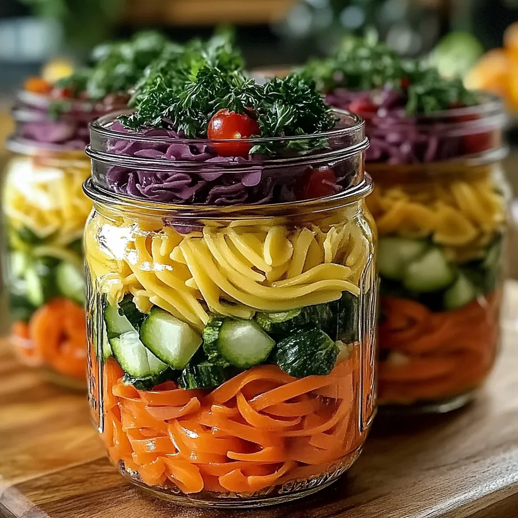 Hey there, friends! I’m so excited to share with you one of my favorite recipes: Rainbow Veggie Pasta Jars. This dish isn’t just a feast for the eyes; it’s packed full of flavors and nutrients that will make your taste buds dance! The first time I made this, I remember sitting in my cozy kitchen, the sun peeking through the window as I chopped colorful veggies. The smell of fresh basil and garlic filled the air, bringing back memories of summer picnics and gatherings with family. Each jar is like a little present: bright and bursting with goodness. So, if you’re looking to brighten up your meal prep or just want an easy, nutritious dish that looks as good as it tastes, you’ve stumbled upon the right recipe!