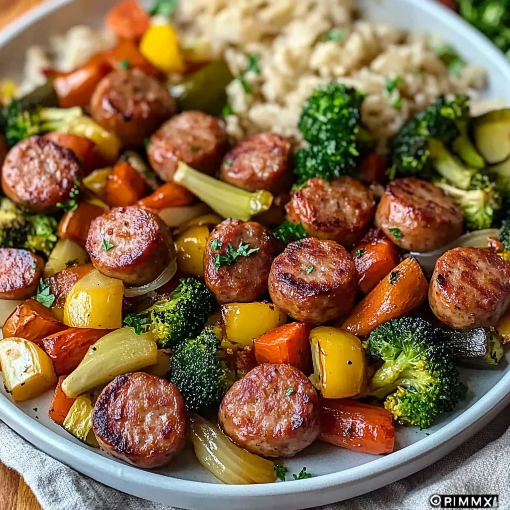 • With Rice or Quinoa: For a hearty meal, serve the sausage and veggies over a bed of rice or fluffy quinoa.