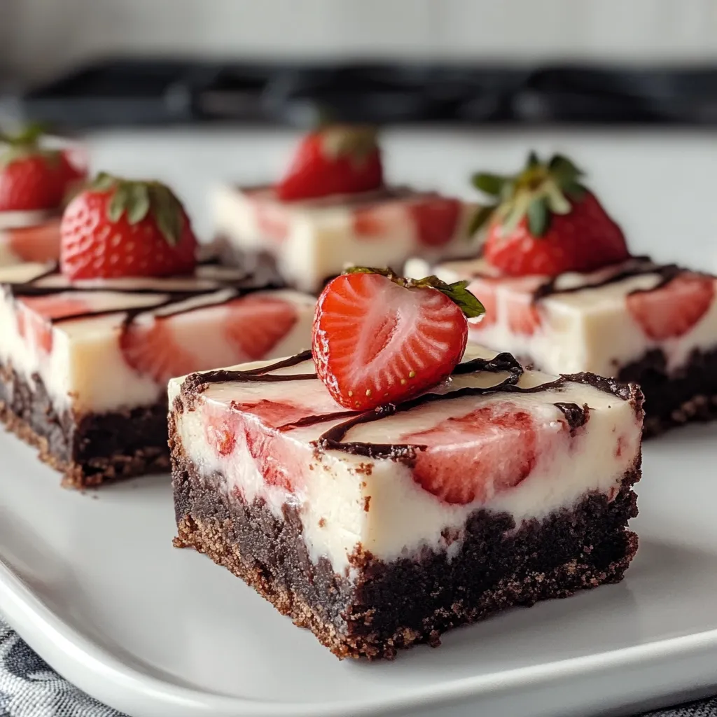 Decadent Strawberry Cheesecake Bars with Fudgy Brownie Crust