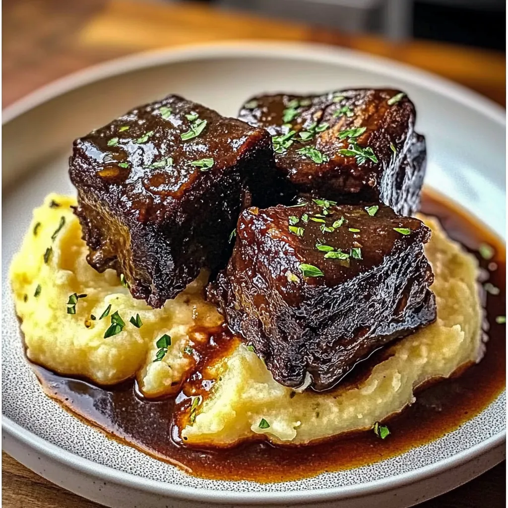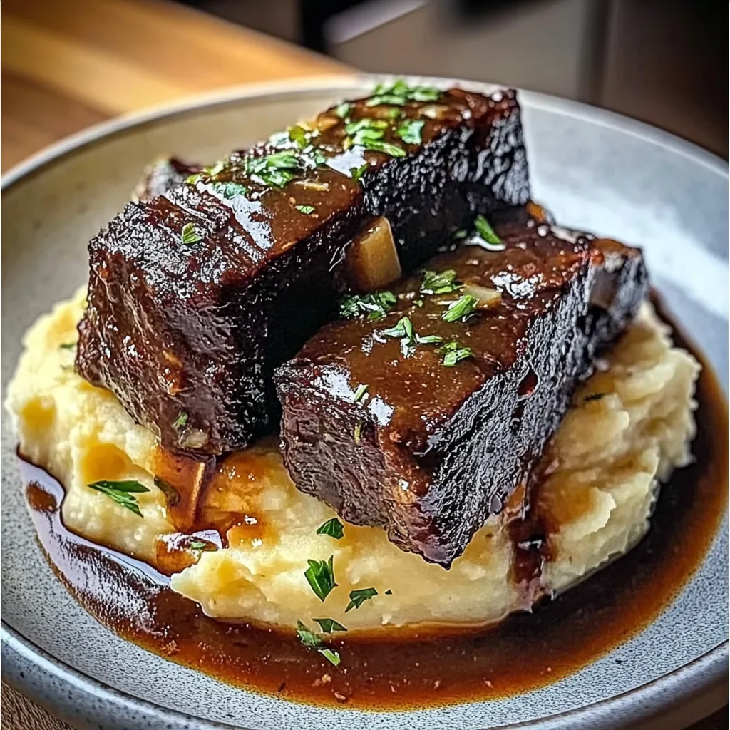 For the ultimate comfort food experience, serve these tender braised short ribs with garlic mashed potatoes alongside a crisp green salad or crusty bread to soak up every last drop of that luscious sauce. A glass of red wine is a lovely pairing, of course! And if you really want to elevate your meal, a side of sautéed green beans or roasted Brussels sprouts would complement the dish beautifully.
