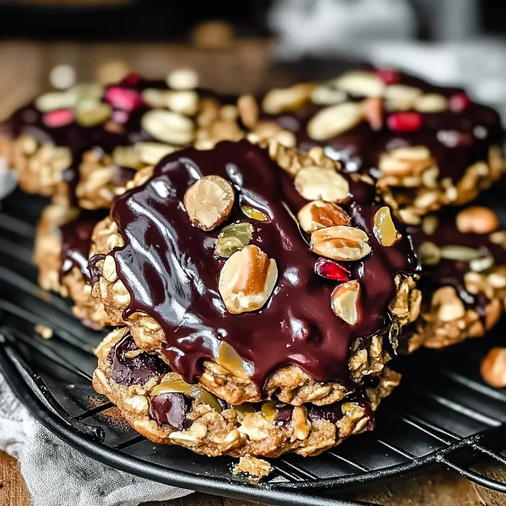 8. Chocolate drizzle time: Once cooled, melt the dark chocolate chips in a microwave-safe bowl, stirring every 30 seconds to avoid burning. Drizzle the melted chocolate over the Florentines using a fork for that delightful artistic flair!